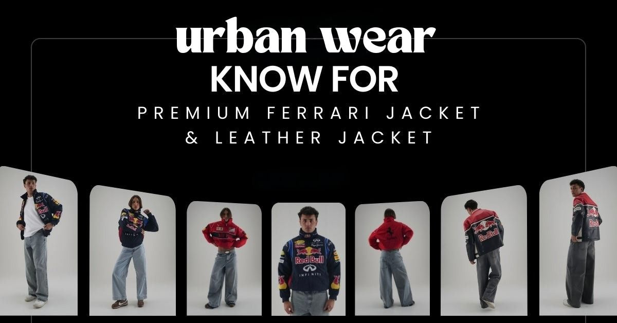 Boy wearing a red and black leather jacket with Redbull brand logos on a dark backgroundBoy wearing a red and black leather jacket with Redbull brand logos on a dark background